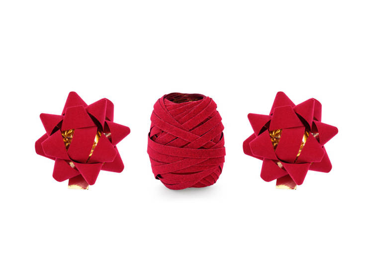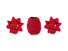 Wstążka i 2 rozety welurowe (czerwone na wierzchu i złote plastikowe w środku).