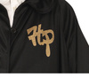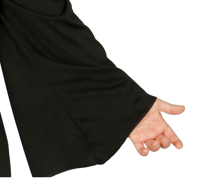 Szata posiada rozszerzane rękawy oraz złoty nadruk na klatce piersiowej.