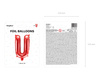 Balon foliowy metalizowany Litera ''U'' w kolorze czerwonym.