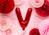 Balon foliowy metalizowany Litera ''V'' w kolorze czerwonym.