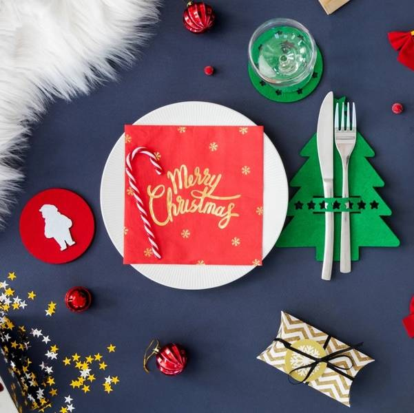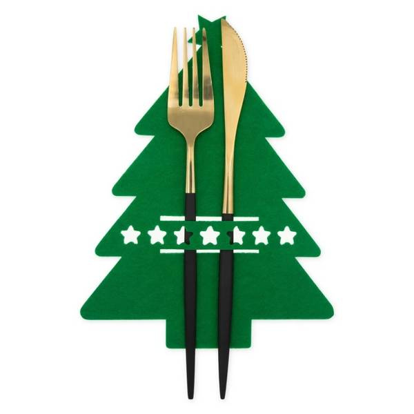 Filcowa podkładka pod sztućce w kształcie choinki.