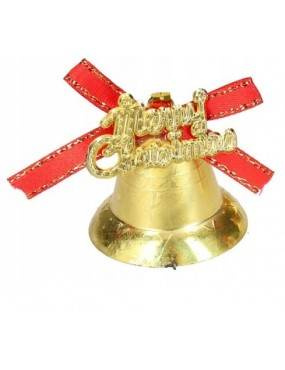 Dzwonki, zawieszki w kolorze złotym z czerwonymi wstążkami.