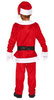 Kubrak Św. Mikołaja w kolorze czerwonym z elementami koloru białego, zapinany z przodu na błyszczące guziki.