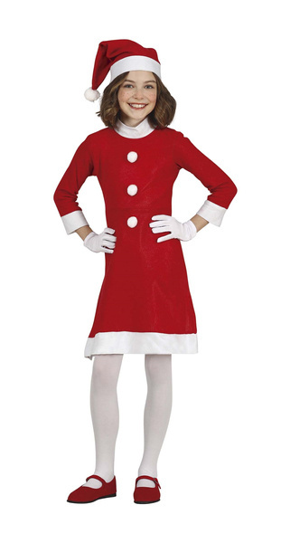 Sukienka w kolorze czerwono- białym z długim rękawem, wykonana z filcu.