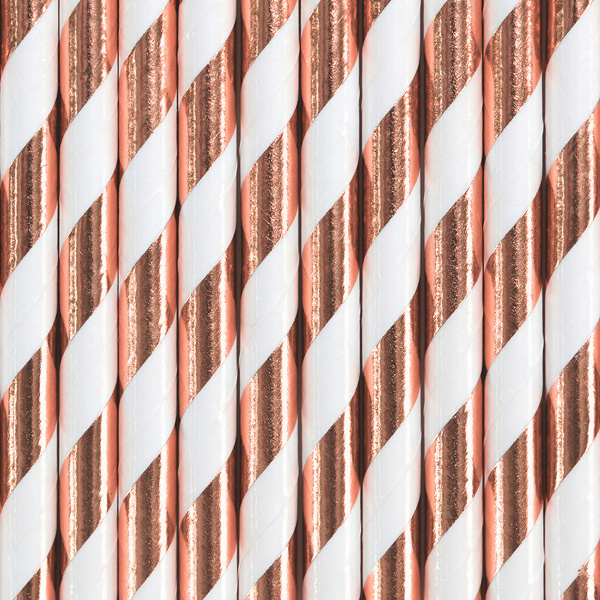 SŁOMKI PAPIEROWE PASKI RÓŻOWE ZŁOTO
