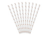 Słomki papierowe w kolorze białym, z metalizowanymi gwiazdkami w kolorze jasnego różowego złota, długość ok. 19.5 cm. Towar nie może być sprzedawany na terytorium RFN, w związku z wewnętrznymi regulacjami prawnymi Niemiec. Towar zgodny z przepisami Unii Europejskiej.