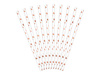 Słomki papierowe w kolorze białym z metalizowanymi sercami w kolorze jasnego różowego złota.