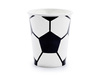 Kubeczki Piłka zrobione z matowego papieru z czarnym błyszczącym nadrukiem.