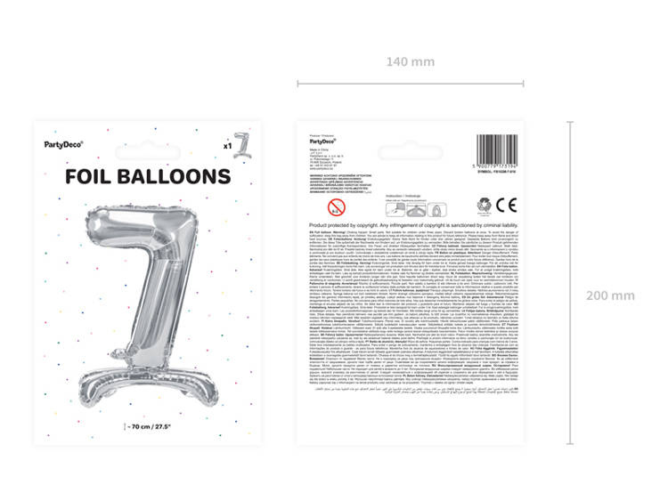 Metalizowany stojący balon foliowy Cyfra ''7''.