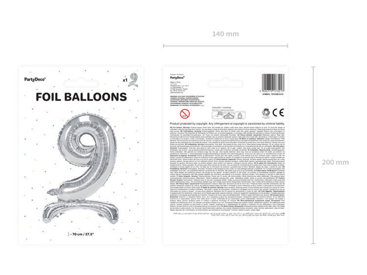 Metalizowany stojący balon foliowy Cyfra ''9''.