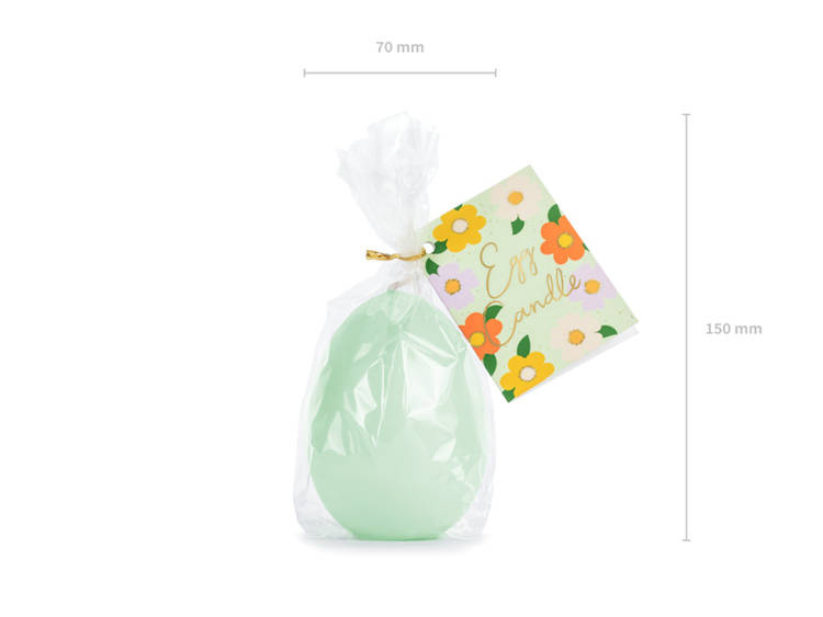 Świeca Jajko w kolorze jasnozielonym, wysokość ok. 10 cm.