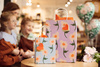 Torebka na prezenty Kwiaty w kolorze niebieskim z kolorowym nadrukiem i 2 zawieszki w kształcie serc.