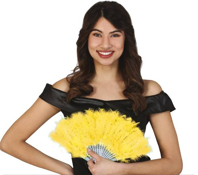 Wykonany z plastiku z doczepionymi pięknymi, żółtymi piórami.