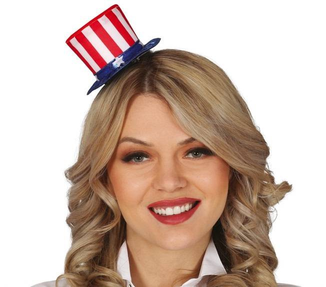 Miniaturowy kapelusik w kolorach flagi Ameryki.
