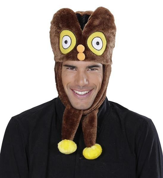 Czapeczka sowy uszyta z ciepłego pluszowego materiału. Kolor: brązowo-żółty. Unisex.Czapka z dziobem i oczkami sowy.