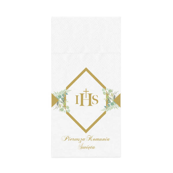Serwetki papierowe z kieszonką na sztućce. Motyw I Komunia Święta.