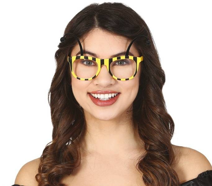 Okulary w paski żółto-czarne.