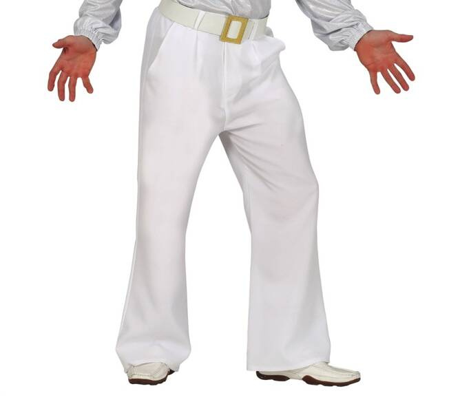 Długie spodnie z rozszerzanymi nogawkami w kolorze białym.