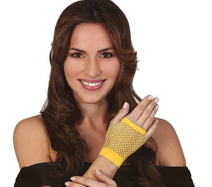Rękawiczki krótkie, wykonane z siateczki w kolorze żółtym.