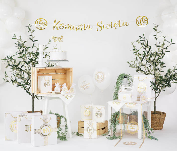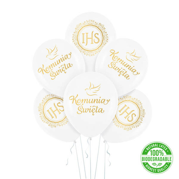 Balony lateksowe z wzorami komunijnymi.