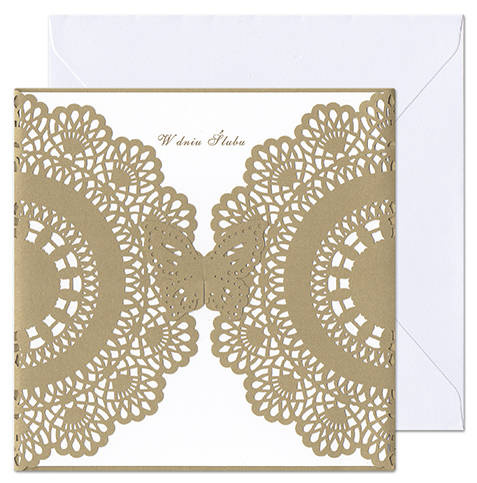 • Kartka na ślub ażurowa z motywem motyla w kolorze złotym.