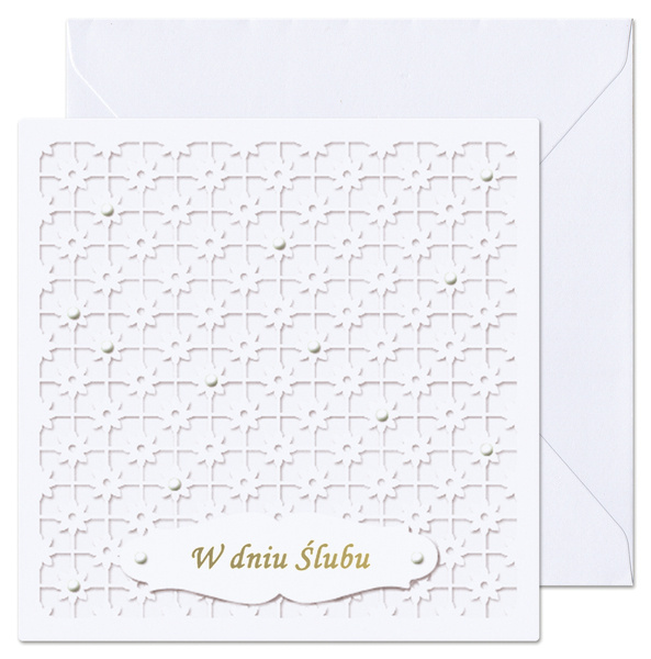 W zestawie koperta oraz wkładka z życzeniami dla Młodej Pary.