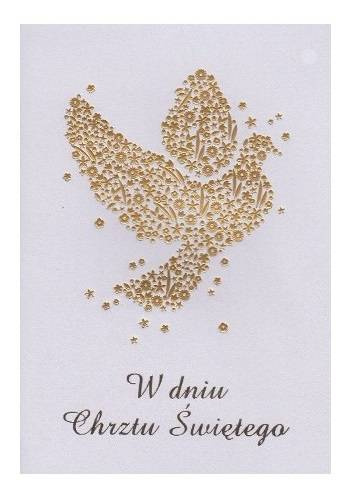 Kartka na Chrzest z delikatnym, złotym motywem gołębia.