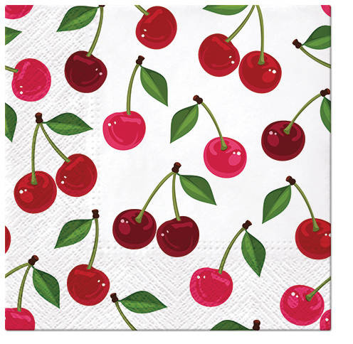 Papierowe serwetki z motywem wisienek.