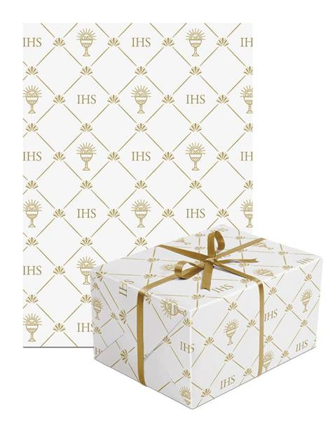Delikatny wzór z motywem kielicha oraz napisem "IHS".