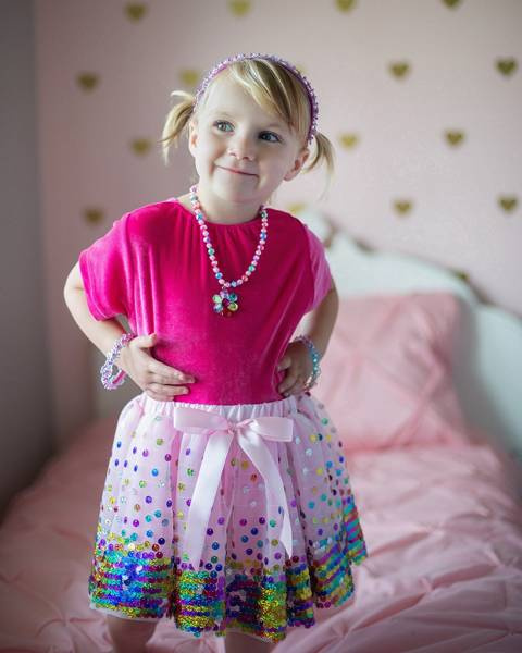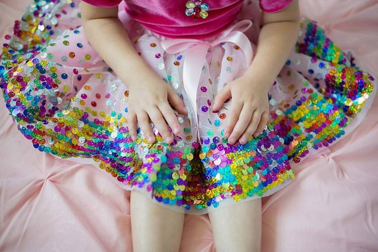 SPÓDNICZKA TUTU RÓŻOWA W TĘCZOWE CEKINY