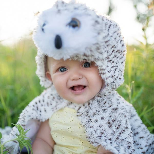 Peleryna sowy w kolorze biało-brązowym. Na białej podszewce.