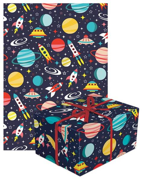Zdobiony motywem rakiet, gwiazd oraz planet.