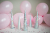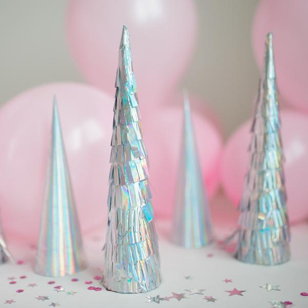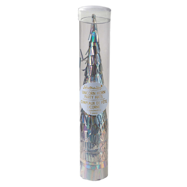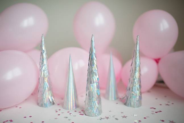 Zestaw papierowych czapeczek w kolorze srebrnym, mieniącym się.