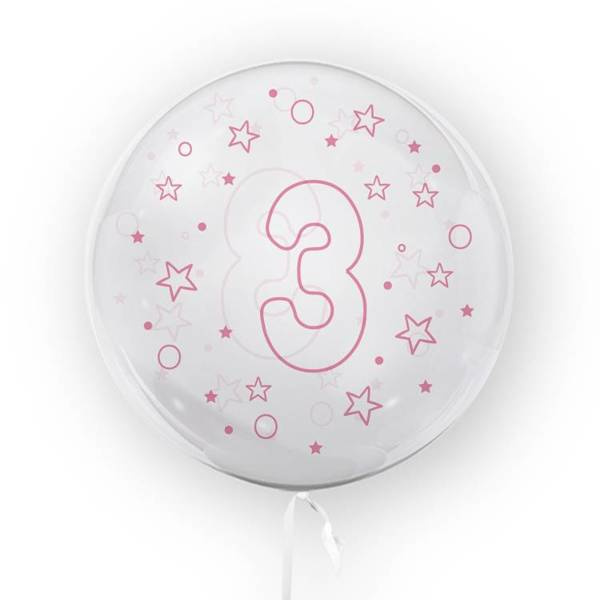 BALON 45 CM – "CYFRA 3 GWIAZDKI" RÓŻOWY