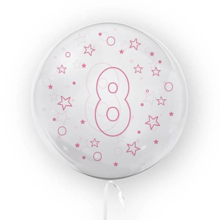BALON 45 CM – "CYFRA 8 GWIAZDKI" RÓŻOWY