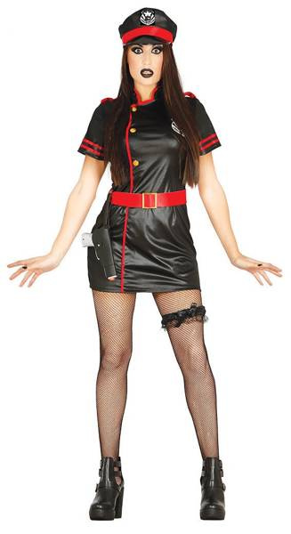 Czarna czapka z daszkiem, otoczona czerwoną tasiemką.