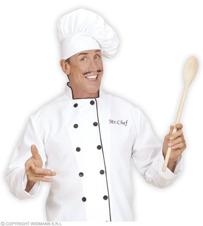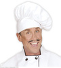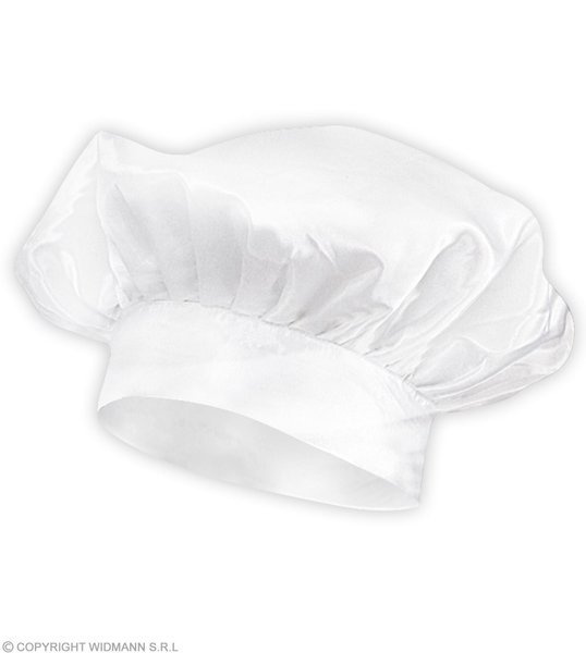 Czapka wykonana z białego materiału; stylizowana na czapkę szefa kuchni.