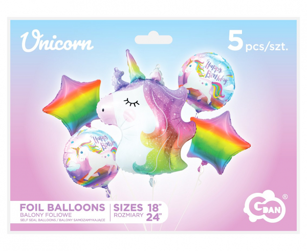 ZESTAW BALONÓW JEDNOROŻEC 5 SZT.