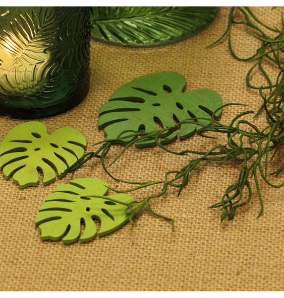 Dekoracja drewniana na stół w kształcie liści palmy.