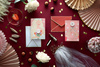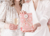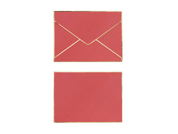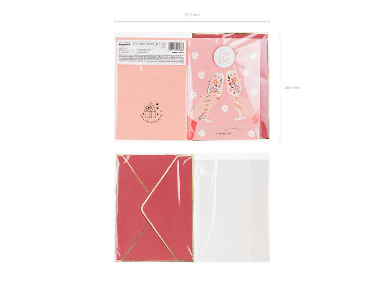 W zestawie różowa koperta ze złotym metalizowanym obramowaniem.