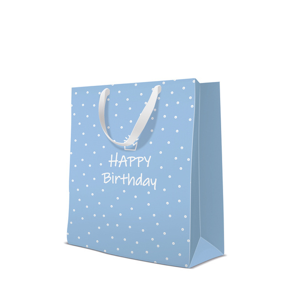 Torba prezentowa w kolorze błękitnym z napisem Happy Birthday.