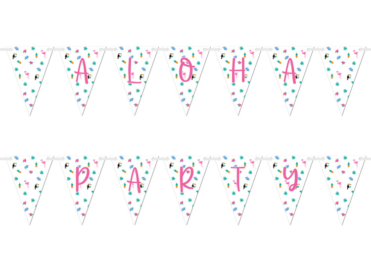 Baner z napisem Aloha Party i hawajskimi motywami.