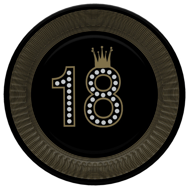 Talerzyki papierowe w kolorze czarnym ze złotymi nadrukami.