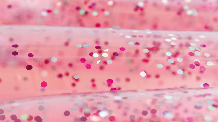 Błyszcząca, brokatowa powłoka.