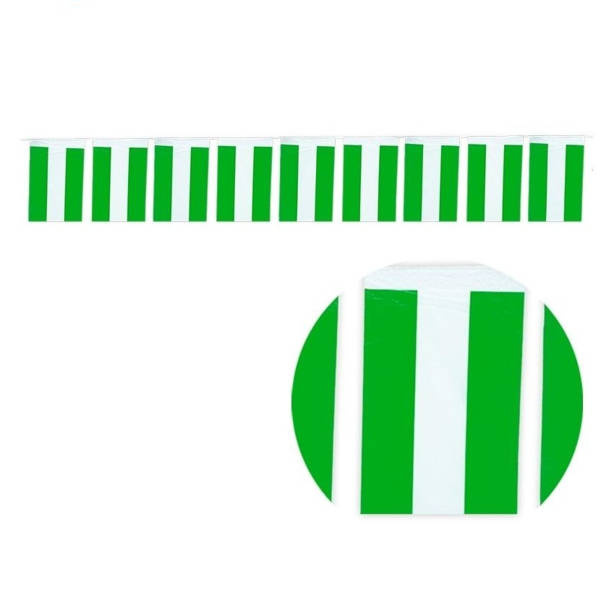 Flagi o wymiarach 30x20 cm, połączonych białą taśmą.