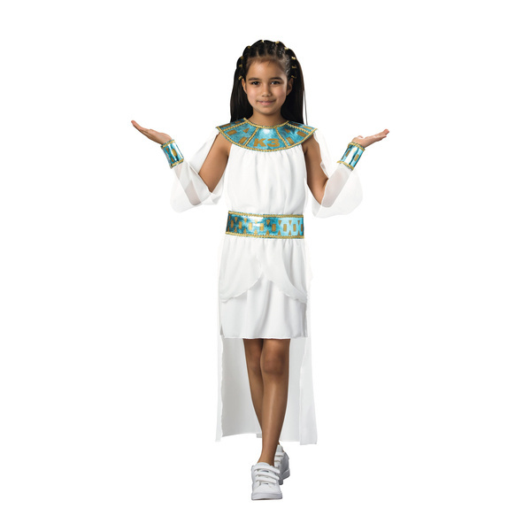 Kołnierz i rękawy zdobione na końcach niebieskim materiałem ze złotym elementem.