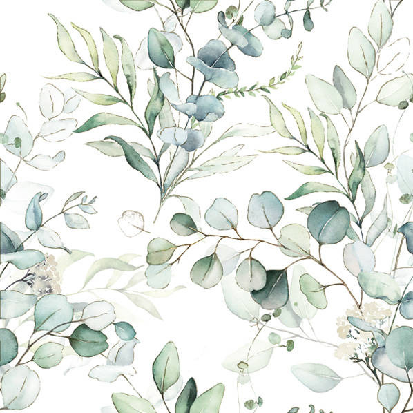 Kolor biały z nadrukiem zielonych gałązek eukaliptusa.