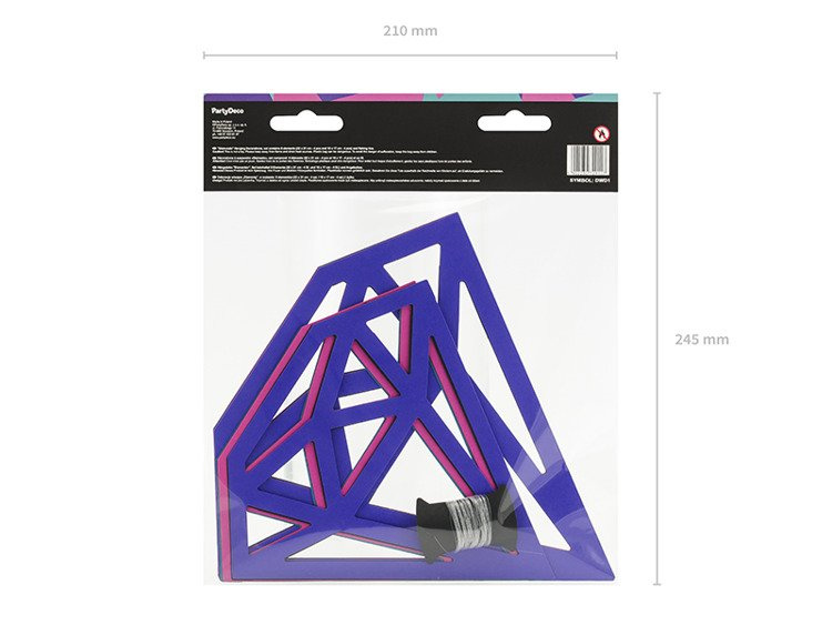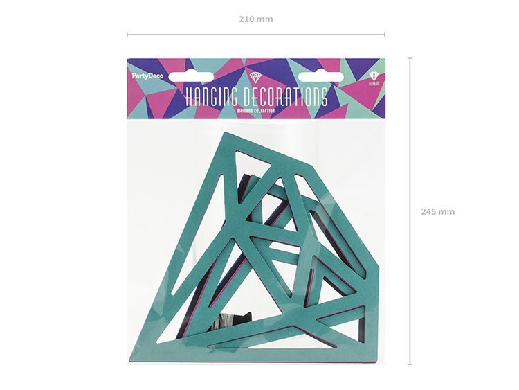 Papierowe dekoracje wiszące w kształcie diamentów.