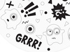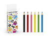 - 6 kredek (czarna, niebieska, zielona, czerwona, różowa i żółta).