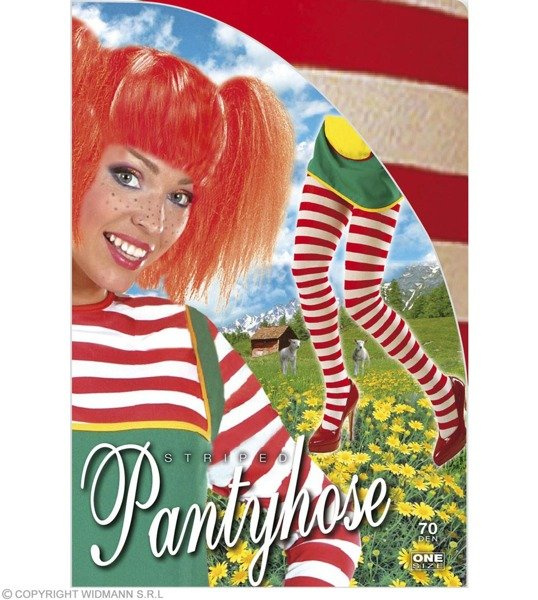 Rajstopy w biało-czerwone paski. Wykonane z wysokiej jakości nylonu (98%).Rajstopy są elastyczne.Grubość: 70 den.